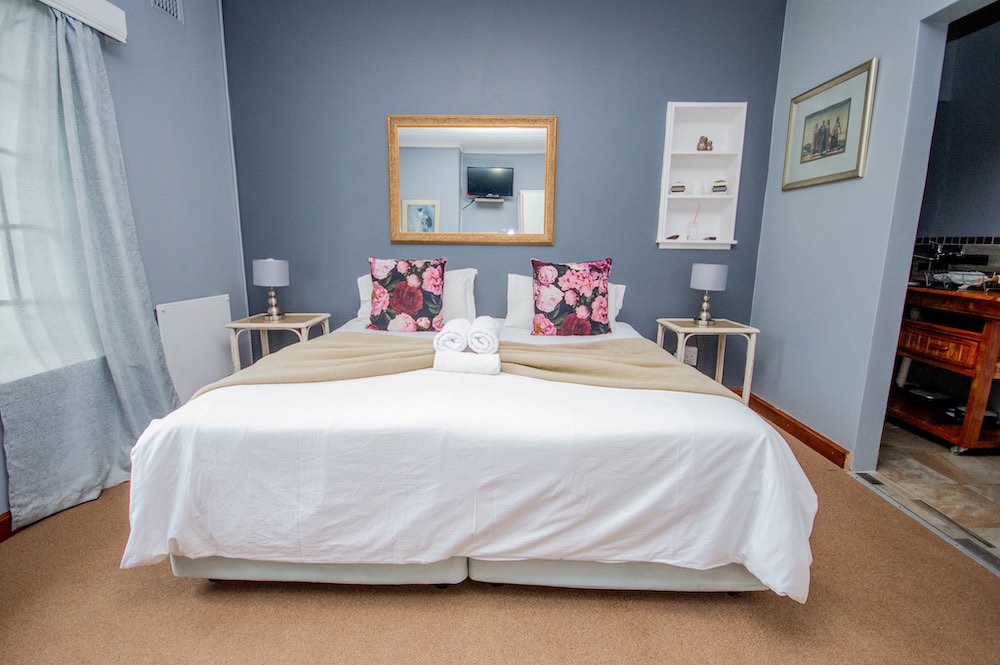 This cosy room is situated in the main house with a king size bed and en-suite bathroom with a shower. It has a kitchenette for self-catering and a small work desk. Enjoy the spectacular views of the garden and Drakensberg mountains.